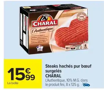 Actuellement en offre chez Carrefour Market : Steaks hachés pur bœuf surgelés CHARAL ✅ Valable du 27-01 au 8-02.