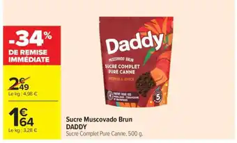 Actuellement en offre chez Carrefour Market : Sucre Muscovado Brun DADDY ✅ Valable du 17-02 au 1-03.