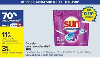 Actuellement en offre chez Carrefour Market : SUN Capsules pour lave-vaisselle ✅ Valable du 27-01 au 8-02.