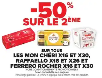 SUR TOUS LES MON CHERI X16 ET X30, RAFFAELLO X18 ET X26 ET FERRERO ROCHER X16 ET X30