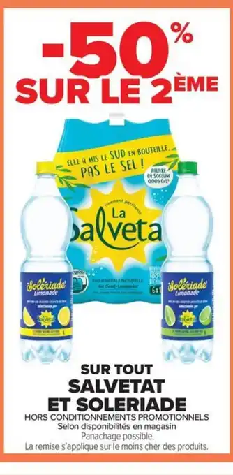 L'offre est disponible dans plusieurs magasins, vérifiez tous les produits pour obtenir le Sur tout salvetat et soleriade le moins cher. Si vous souhaitez savoir si l'article est en vente avec une plus grosse remise dans un autre magasin, consultez la catégorie 'Supermarché'. Ces offres pourraient aussi vous intéresser : SALVETAT Sur la gamme, SALVETAT Sur la gamme & HOLLYWOOD Sur tout.