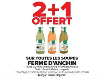 Actuellement en offre chez Carrefour Market : SUR TOUTES LES SOUPES FERME D'ANCHIN ✅ Valable du 3-02 au 15-02.