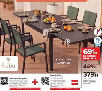 En plus de l'offre Table extensible Sydney, Carrefour Market propose une large gamme de produits. Consultez le Catalogue Carrefour Market hebdomadaire pour découvrir les meilleures offres et promotions. En plus de Table extensible Sydney, il y a aussi : Table extensible Sydney + Fauteuil Sydney, Hyba table extensible + fauteuil sydney & Hyba table extensible + fauteuil sydney.
