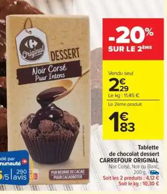 Tablette de chocolat dessert CARREFOUR ORIGINAL offres et promotions en ligne chez Carrefour Market