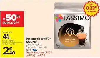 Actuellement en offre chez Carrefour Market : Tassimo - dosettes de café l'or ✅ Valable du 20-01 au 2-02.