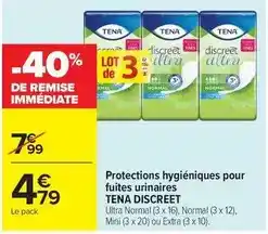 Actuellement en offre chez Carrefour Market : Tena - protections hygiéniques pour fuites urinaires discreet ✅ Valable du 27-01 au 8-02.
