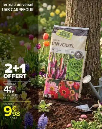 Actuellement en offre chez Carrefour Market : Terreau universel uab carrefour ✅ Valable du 21-04 au 3-05.