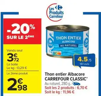 Offre Thon entier Albacore CARREFOUR CLASSIC' chez Carrefour Market
