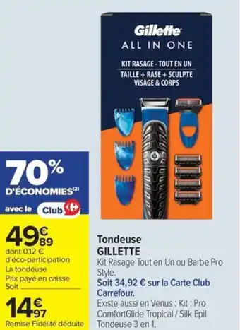 Actuellement en offre chez Carrefour Market : Tondeuse gillette ✅ Valable du 3-02 au 15-02.