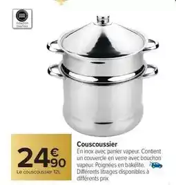 Le prix de l'offre Tous - couscoussier se trouve également en haut de la page, ainsi que la date à laquelle l'offre est disponible. Vous pouvez également vérifier les prix dans le Catalogue Carrefour Market actuel ou sur le site Internet de Carrefour Market. Les offres vous permettent d'acheter les produits Carrefour Market au prix le plus bas.