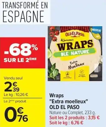 Actuellement en offre chez Carrefour Market : Wraps extra moelleux old el paso ✅ Valable du 21-04 au 3-05.