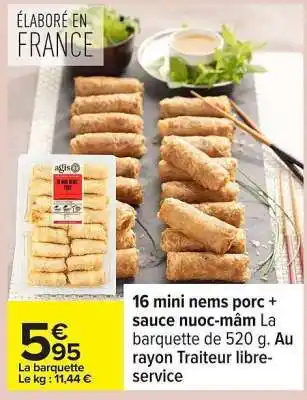 Offre 16 mini nems porc + sauce nuoc-mâm chez Carrefour