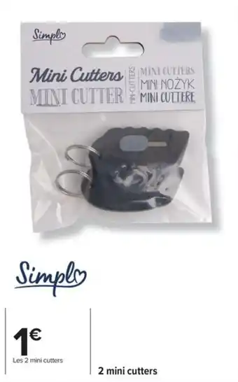 En plus de l'offre 2 mini cutters, Carrefour propose une large gamme de produits. Consultez le Catalogue Carrefour hebdomadaire pour découvrir les meilleures offres et promotions. En plus de 2 mini cutters, il y a aussi : Simpl 2 mini cutters, Simply - mini cutters & Lot de 3 cutters + lames.