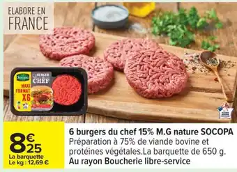 Offre 6 burgers du chef 15% M.G. nature SOCOPA chez Carrefour