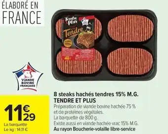 Y a-t-il une promotion sur 8 steaks hachés tendres 15% M.G. TENDRE ET PLUS la semaine prochaine chez Carrefour ?