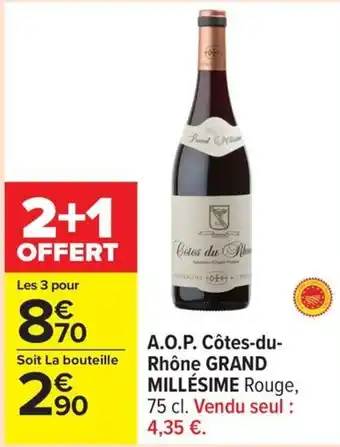 A.o.p. côtes du rhône grand millésime offres et promotions en ligne chez Carrefour