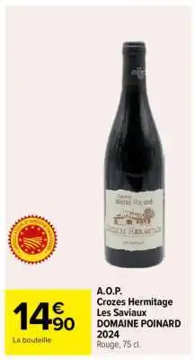 Offre A.O.P. Crozes Hermitage Les Saviaux DOMAINE POINARD 2024 chez Carrefour