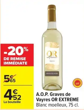 Actuellement en offre chez Carrefour : A.o.p. graves de vayres or extreme ✅ Valable du 15-12 au 24-12.