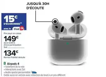 Offre Airpods 4 chez Carrefour