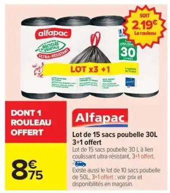 Alfapac Lot de 15 sacs poubelle 30L 3+1 offert offres et promotions en ligne chez Carrefour