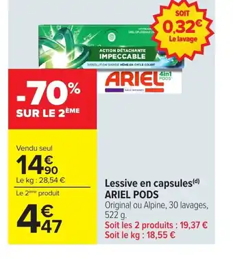 Actuellement en offre chez Carrefour : ARIEL PODS Lessive en capsules ✅ Valable du 21-04 au 4-05.