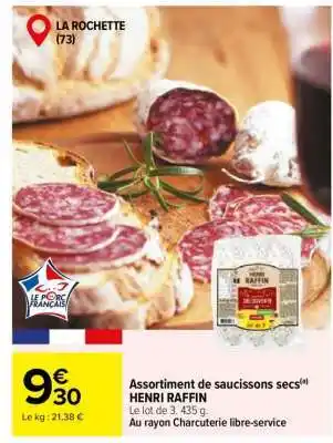 Actuellement en offre chez Carrefour : Assortiment de saucissons secs HENRI RAFFIN ✅ Valable du 20-02 au 9-03.