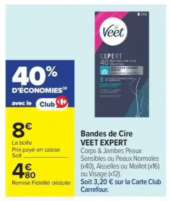 Bandes de Cire VEET EXPERT : offres et promos Carrefour à découvrir
