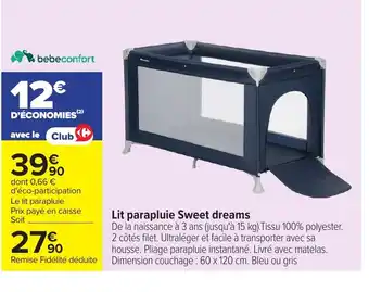 Actuellement en offre chez Carrefour : BEBECONFORT Lit parapluie Sweet dreams ✅ Valable du 21-04 au 4-05.