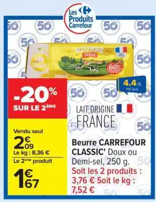 Beurre CARREFOUR CLASSIC' : offres et promos Carrefour à découvrir
