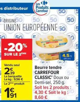 Beurre tendre CARREFOUR CLASSIC' : offres et promos Carrefour à découvrir