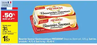Actuellement en offre chez Carrefour : Beurrier Saveur Gastronomique Président ✅ Valable du 17-03 au 30-03.