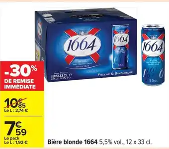 Actuellement en offre chez Carrefour : Bière blonde 1664 ✅ Valable du 6-01 au 19-01.