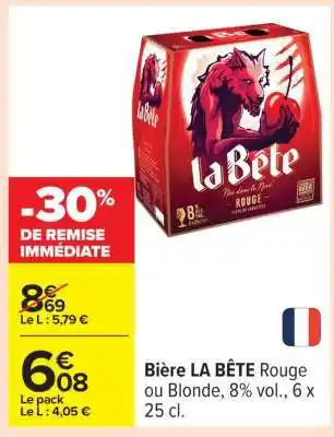 Actuellement en offre chez Carrefour : Bière LA BÊTE Rouge ou Blonde ✅ Valable du 6-01 au 19-01.