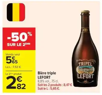 Actuellement en offre chez Carrefour : Bière Triple Lefort ✅ Valable du 17-02 au 4-03.