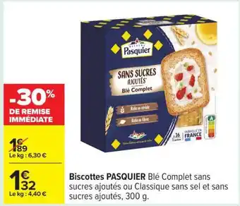 Biscottes PASQUIER Blé Complet offres et promotions en ligne chez Carrefour