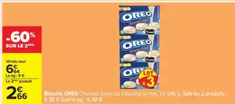 Actuellement en offre chez Carrefour : Biscuits OREO Chocolat blanc ou Chocolat au lait, 3 x 246 g ✅ Valable du 27-01 au 9-02.