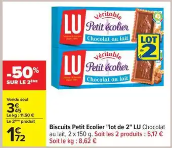 Offre Biscuits Petit Ecolier lot de 2 LU Chocolat au lait chez Carrefour