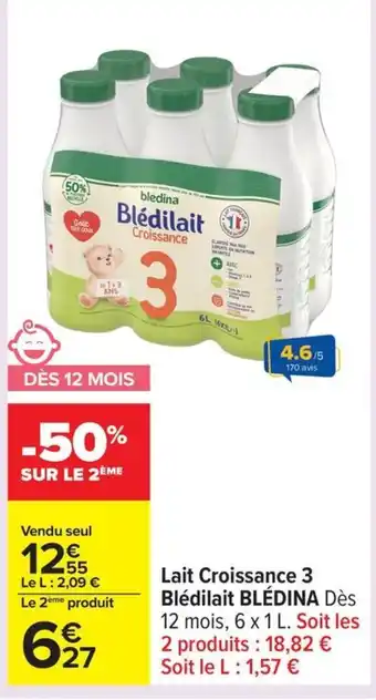 Offre BLÉDINA Lait Croissance 3 Blédilait chez Carrefour