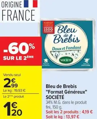 Bleu de Brebis Format Généreux SOCIÉTÉ offres et promotions en ligne chez Carrefour