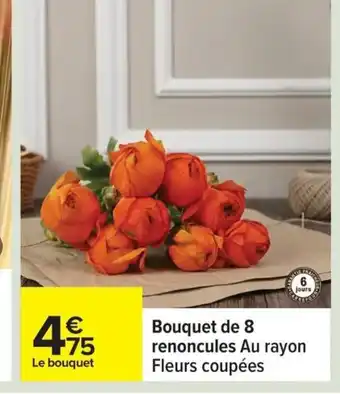 Actuellement en offre chez Carrefour : Bouquet de 8 renoncules ✅ Valable du 17-03 au 30-03.