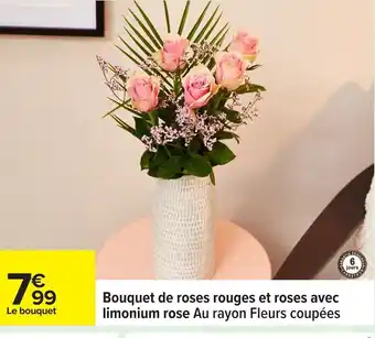Offre Bouquet de roses rouges et roses avec limonium rose chez Carrefour