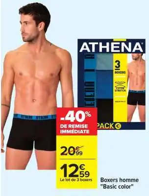 En plus de l'offre Boxers homme Basic color, Carrefour propose une large gamme de produits. Consultez le Catalogue Carrefour hebdomadaire pour découvrir les meilleures offres et promotions. En plus de Boxers homme Basic color, il y a aussi : Athena boxers homme basic color, Athena boxers homme basic color & Boxers homme basic coton.