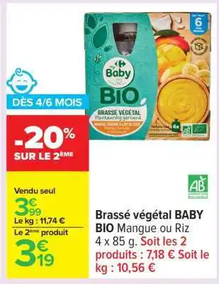 Brassé végétal BABY BIO Mangue ou Riz : offres et promos Carrefour à découvrir