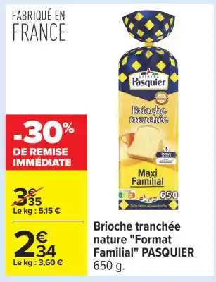 Brioche tranchée nature Format Familial PASQUIER offres et promotions en ligne chez Carrefour