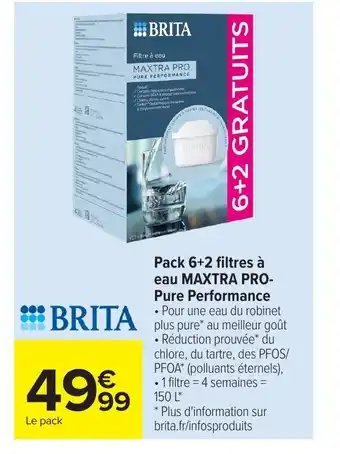 BRITA Pack 6+2 filtres à eau MAXTRA PRO- Pure Performance : offres et promos Carrefour à découvrir