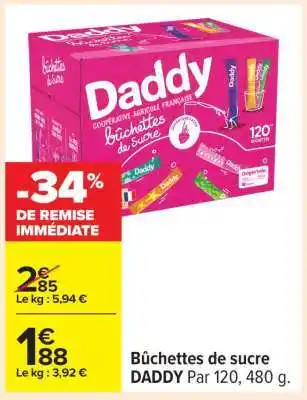 Actuellement en offre chez Carrefour : Bûchettes de sucre DADDY ✅ Valable du 24-02 au 9-03.
