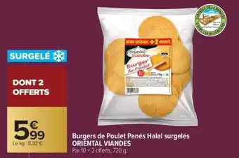 Offre BURGERS DE POULET PANÉS HALAL SURGELÉS “ORIENTAL VIANDES” chez Carrefour