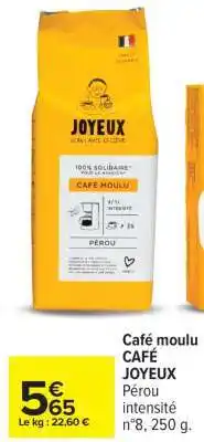Actuellement en offre chez Carrefour : Café moulu CAFE JOYEUX ✅ Valable du 17-03 au 30-03.