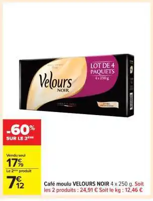 Actuellement en offre chez Carrefour : Café moulu VELOURS NOIR 4 x 250 g ✅ Valable du 3-02 au 16-02.
