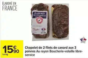 Canard - chapelet de 2 filets de aux 3 poivres au rayon boucherie-volaille libre- service : offres et promos Carrefour à découvrir